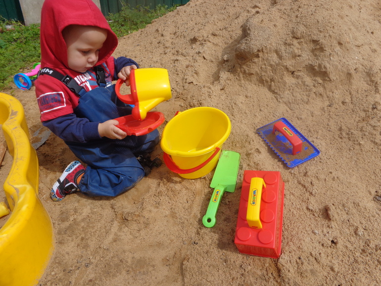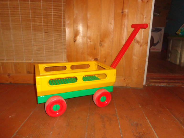 Хитом у нас стали тележечки. Носится с ними было любимой забавой на даче, думаю тачки еще взять))) Размер как раз для нас, можно по вагонке посчитать)