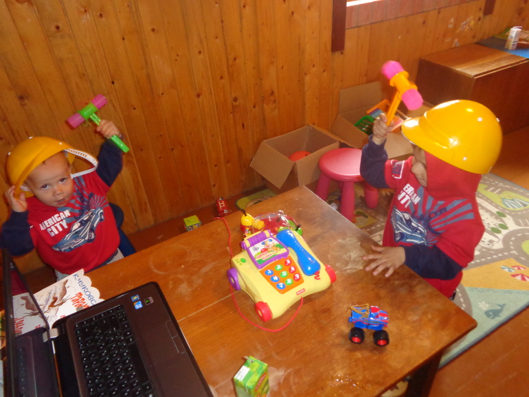 Молотки и каски - отдельные позиции, игру придумали сами, долбить друг друга) Каски хорошие, молотки обыкновенные.