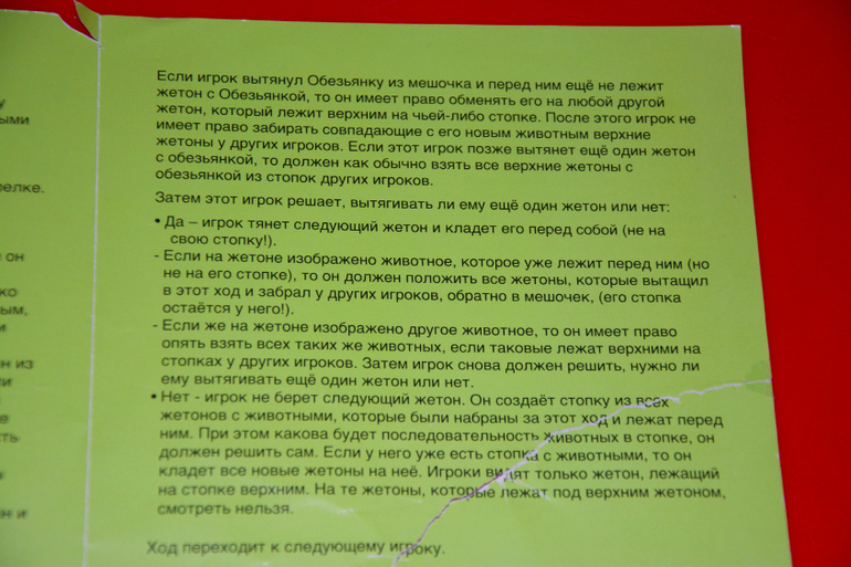 Правила игры описывать долго и нудно не буду, просто покажу их (Рося правда, не много правила пожамкал, пришлось воспользоваться СуперСкотчем и реанимировать ампутированный кусочек на место)