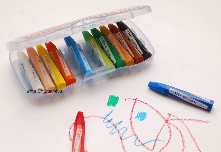 Масляные мелки корейские (взяла их также по отзыву), пишут очень мягко и сочно! у нас только восковые мелки были, они бледнее.
