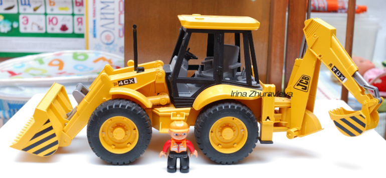 Трактор Bruder - большой,прочный, функциональный, ковш и погрузчик двигаются, даже сиденье водителя крутится,колеса прорезиненные. Качество супер! Брала на 2 годика сыну.