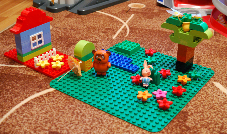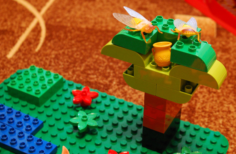 Сказка про Винни-Пуха и пчёл (пчелы из набора насекомых этого же производителя). Идею такой игры подсмотрела у девочек на ББ.