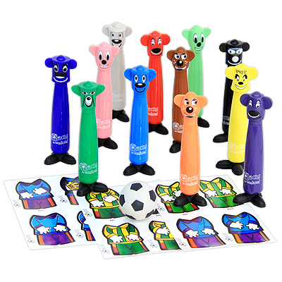 Фломастеры предназначены для самых маленьких художников. Толстый корпус, яркие цвета, легко смываются с тела водой, отстирываются с большинства видов ткани.Фломастеры с колпачками в виде голов человечков-футболистов двенадцати разных цветов. Наклейки - костюмчики. ![]() |