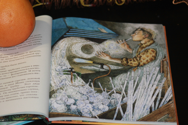 это одна из моих любимых иллюстраций ))))))))Высокие одинаковые прозрачные трубочки стояли в ящике и мечтали . кем они станут?Кто то хотел превратится в космонавта кто хотел стать бабочкой а кто то хотел стать шариком.....почему то явно в этих словах прослеживается для меня жизнь человека...как бы здорово было иметь в жизни такого дядю Мишу ...которому можно было бы шепнуть на ушко свою заветную мечту ...а этот волшебник сделал бы её явью....