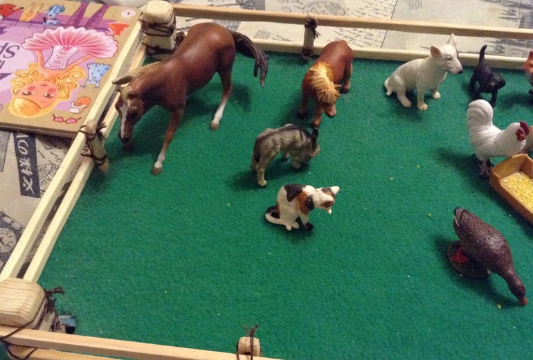 О, это шикарно!) А какой заборчик!)) Я бы играла сама)) Пусть папа еще и лес смастерит для хищников)Круть!