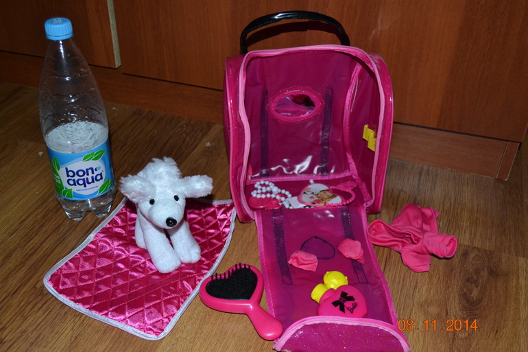 463 р. в инете почти в 2 раза дороже. дочке ооочень понравился,я надеялась,что собачка будет побольше.на фото вода литровая