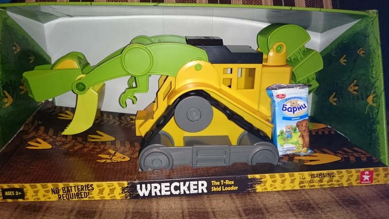 Удивительная строительная техника, которая выглядит совершенно как динозавр - нет таких объектов, которые были бы не по зубам строительной компании Дино. Экскаватор роет ямы, перевозит некоторые грузы или, наоборот, может сровнять грунт с землёй, подготовив строительную площадку. А когда всё необходимое построено, можно играть в древних животных. У брахиозавра голова подвижная голова на телескопической шее, вращающиеся ролики гусениц, нижняя челюсть запросто имитирует жевательные движения. Пластмассовая игрушка прекрасно функционирует и в песке, и на траве, и на ковровом покрытии - в любом месте, где малыш захочет с ней поиграть. Полное отсутствие металлических частей и необходимости в элементах питания делает игрушку очень надёжной и долговечной. Яркий пластик безопасен для ребёнка и очень ему нравится, привлекает всеобщее внимание. Малыш придумает много интересных и разнообразных игр с этой необычной игрушкой.