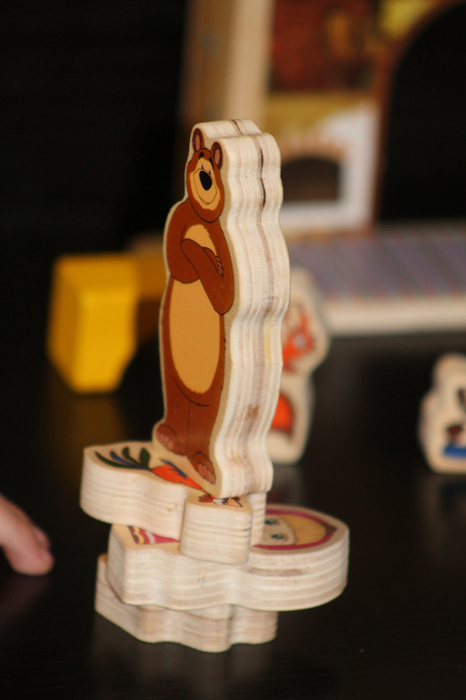 А теперь поподробнее))))) Я даже не представляла какой он классный))))))) если вы еще думаете над подарочками и у вас есть маленький любитель Маши то восторг вам обеспечен) Очень очень хорошо сделаны сами герои фигурки выполнены из толстенького кусочка дерева...ну не цельного а скорее из клеенного не знаю как точнее это объяснить) Все фигурки гладенькие и очень красивые))))))))))))))) А домик это отдельное чудо))))))))))) а сколько игр можно придумать)))))))))