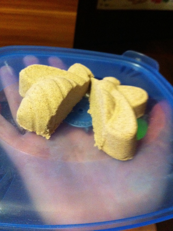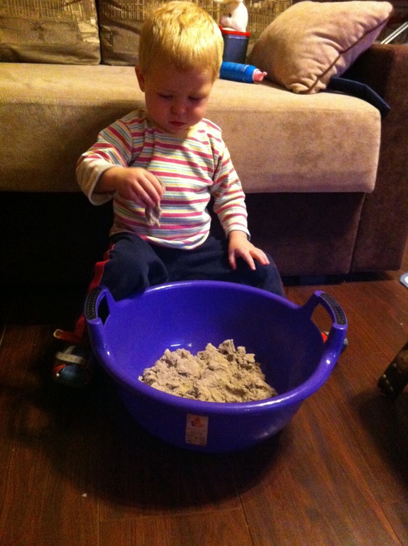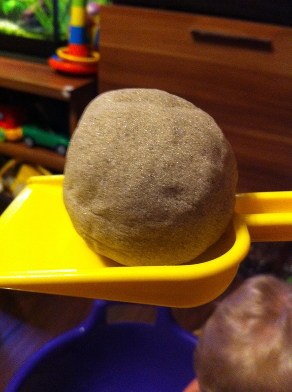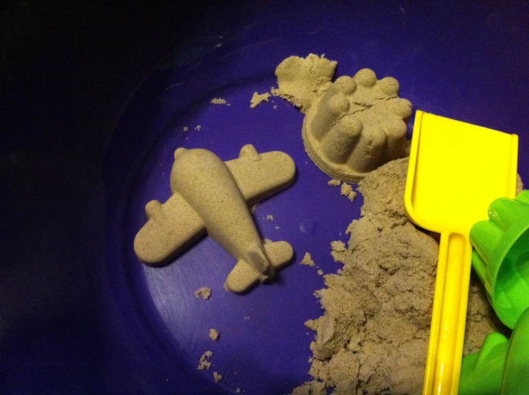 А давайте хвастаться))))))))))Мне песок очень понравился. Давно ребенок так на долго чем-то не увлекался. Вчера сидели больше часа. Лепится из него все хорошо. Если слепить шар и бросить, форма остается, если положить лепешку на руку, то он как бы медленно стекает. При попадании на пол легко убирается. После игры убираю вокруг пылесосом/веником в течении нескольких секунд. Конечно это игра под присмотром;)