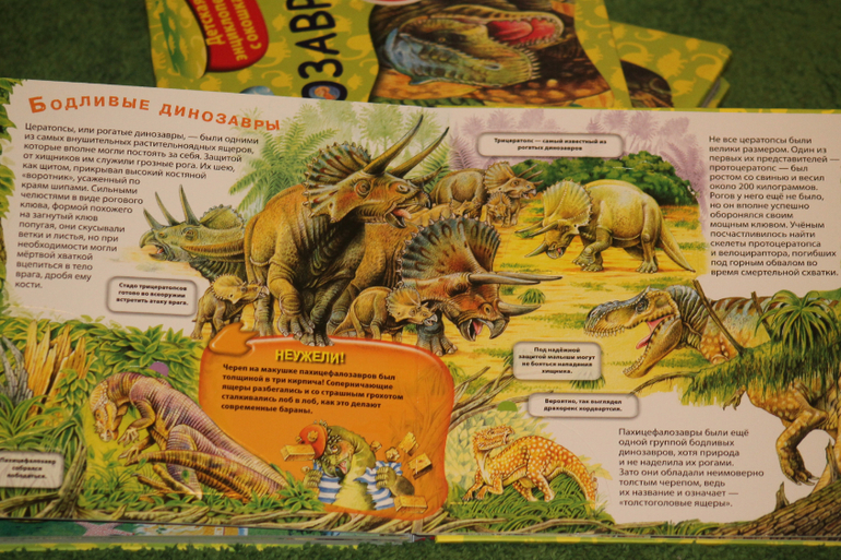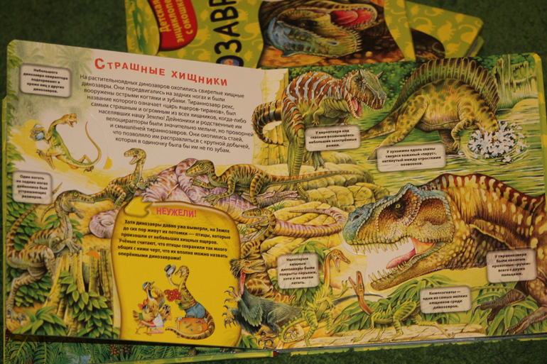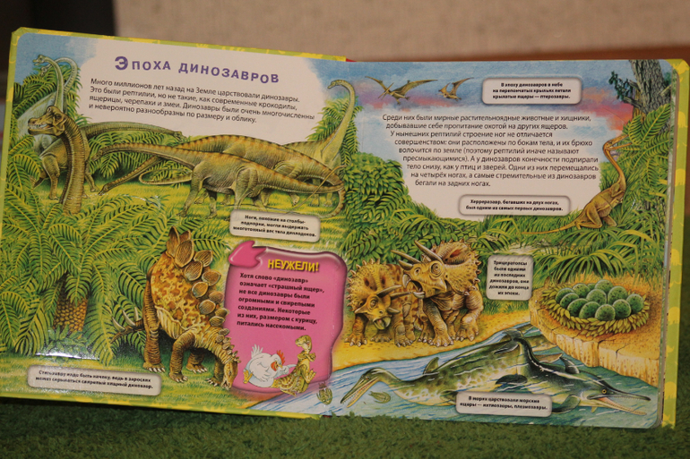 Эта книга - увлекательное путешествие в удивительный и загадочный мир динозавров, обитавших на Земле миллионы лет назад. Узнайте последние научные факты об этих потрясающих существах и не пропустите ни одного окошка с секретами. Кстати, родители, присоединяйтесь! Вы тоже можете узнать много нового о жизни тех, кто когда-то населял нашу чудесную планету.Книга шикарная)))))))))))) мне она досталась по акции но она стоит своих денег))))))))))))) |
