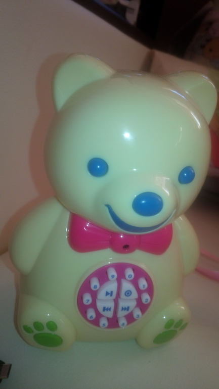 Наш мишка знает 241 сказку, поет 6 песенок, читает 10 небольших стихов и умеет отвечать на некоторые вопросы.