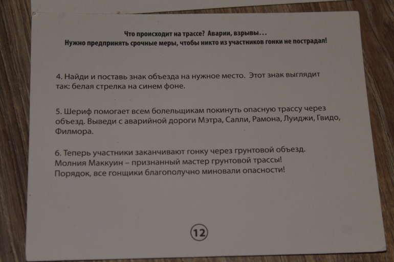 - 12 карточек с заданиями на логику, внимательность, развитие мышления и знание любимых мультиков.