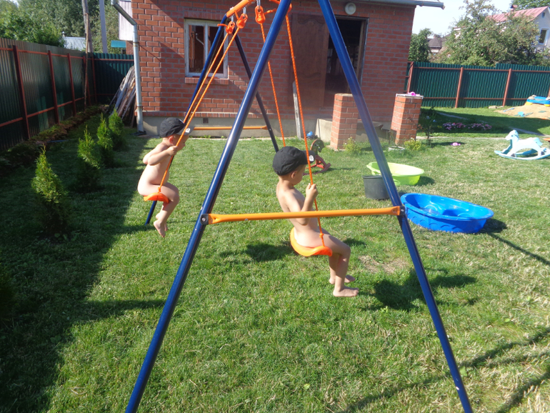 Единственное не порнофото получилось сбоку)))) На удивление - дети не сваливаются, как с аналогичных качелек на площадках! Все соседские мамашки уже опробовали - не падают детишки))))