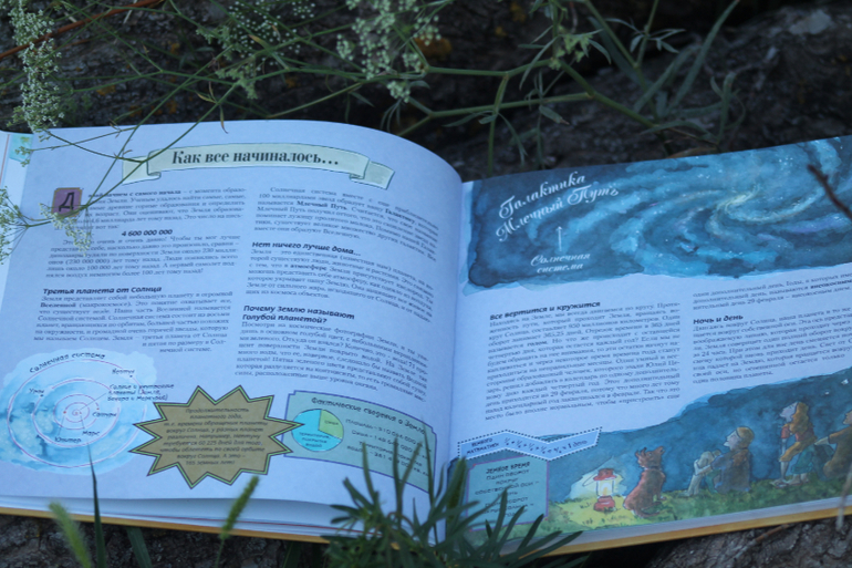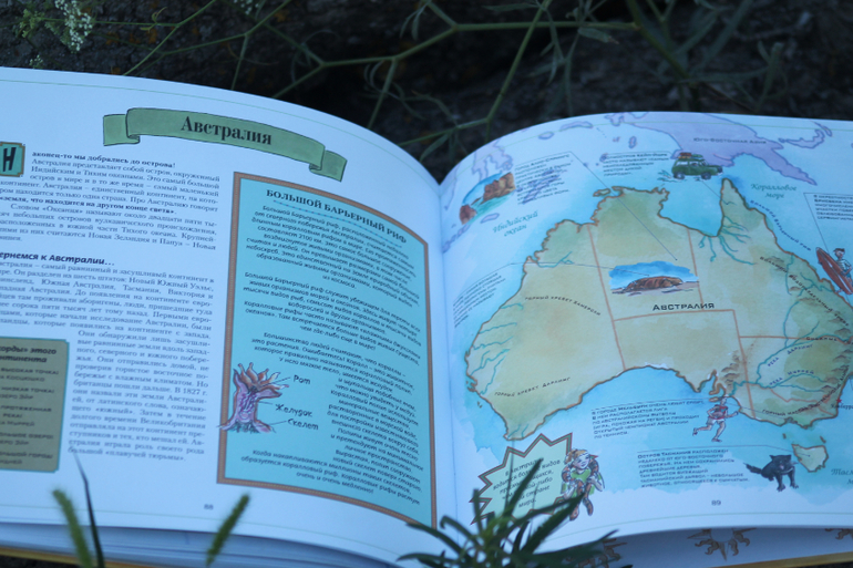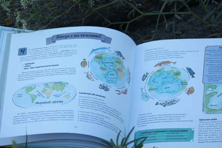 Вместе с этой книгой можно путешествовать не выходя из дома,побывать на всех океанах...и самых высоких горах..узнать столицы всех государств..да и вообще много чего интересного скрыто под обложкой ) И рассчитана она на маленьких почемучек...потому как в книге не только дают понятие основным явлениям на планете но и приводят множество интересных фактов ...таких о которых и не все взрослые то в курсе) ))))))))))) Это своего рода учебник географии 3+)))))) Я впечатлина оформлением ...то что это не просто фото это рисунки да еще и такие детальные))))))