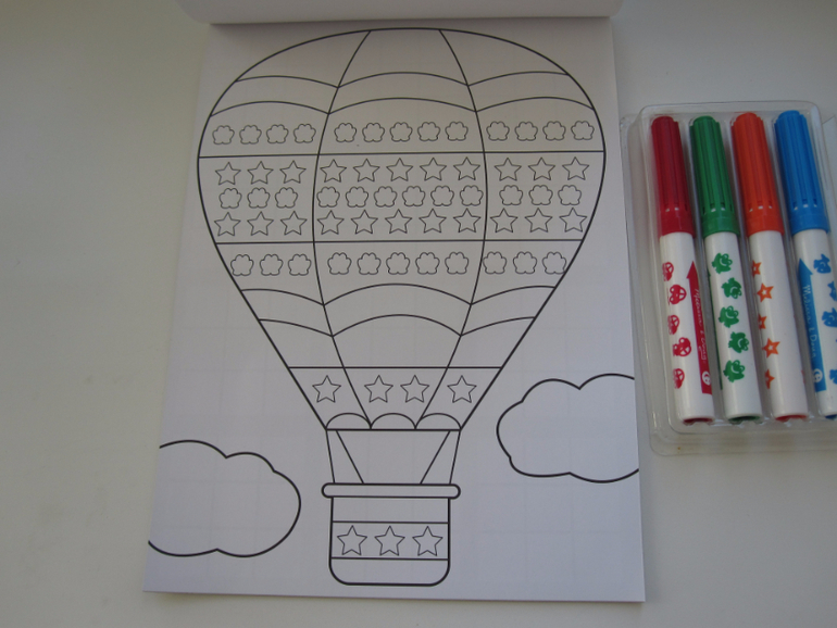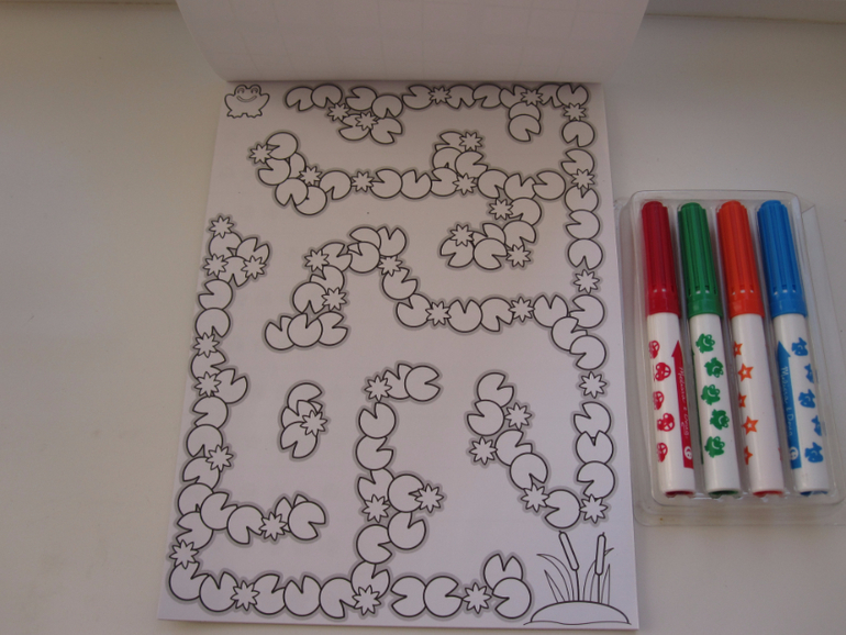 В набор входит 4 маркера-штампика.Лягушка,машинка,звезда,рыбка. + 20 заготовок с рисунками где нужно ставить штампики. Мы пока с набором не подружились. Дочке 2, 7 самостоятельно поставить штамп не получается. надо нажимать и одновременно покачивать маркер что бы отпечатался рисунок полностью. Производитель рекомендует с 4 лет.