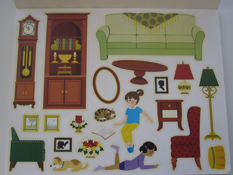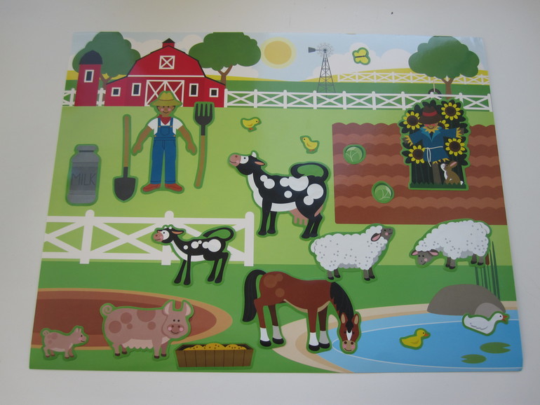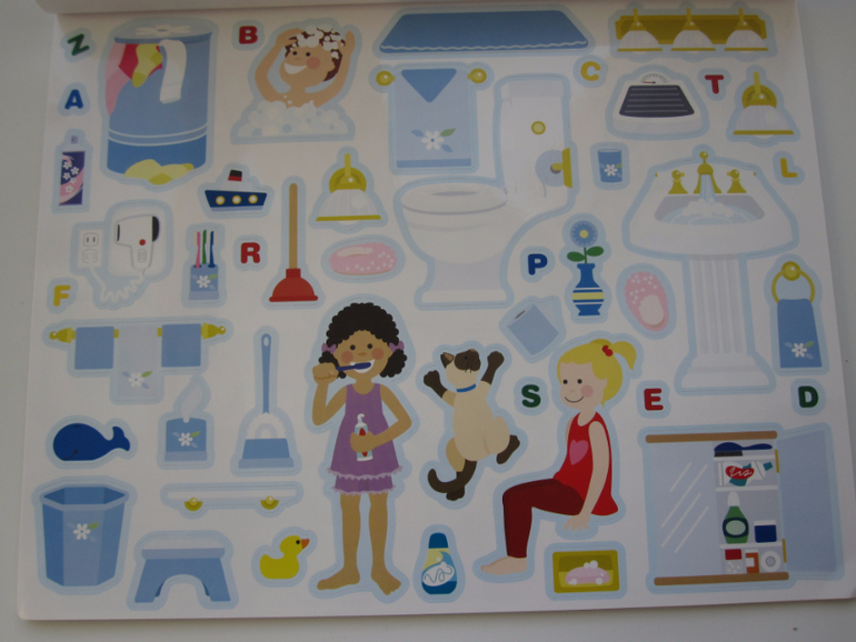 Стикеры понравились. Крупные, яркие. Представляют из себя пленку без клеевой основы,но держаться хорошо даже на других поверхностях,например на холодильнике.Их довольно много по каждой теме,за один раз все на фоне не умещаются.Играем несколько дней-все держится.Вот как это может выглядеть.