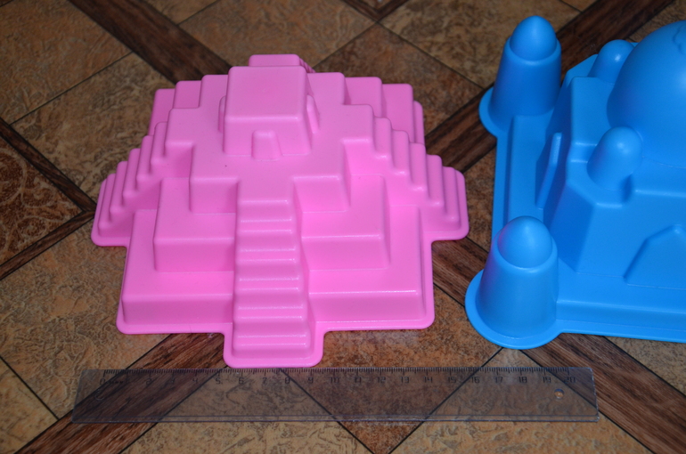 Игрушки для песочницы:пирамида Майя,пирамида Таджмахал-это просто что-то!!!Не ожидала,что они такого огромного размера.Очень красивые,сочного цвета,такие и в подарок не стыдно подарить))и цена радует.Набор строительной техники из пяти машинок немного расстроил,от него ожидала лучшего,на мой взгляд слишком хрупкий пластик,всё же за такие деньги можно было сделать попрочнее. На фото нет одной машинки,уже успели разломать))