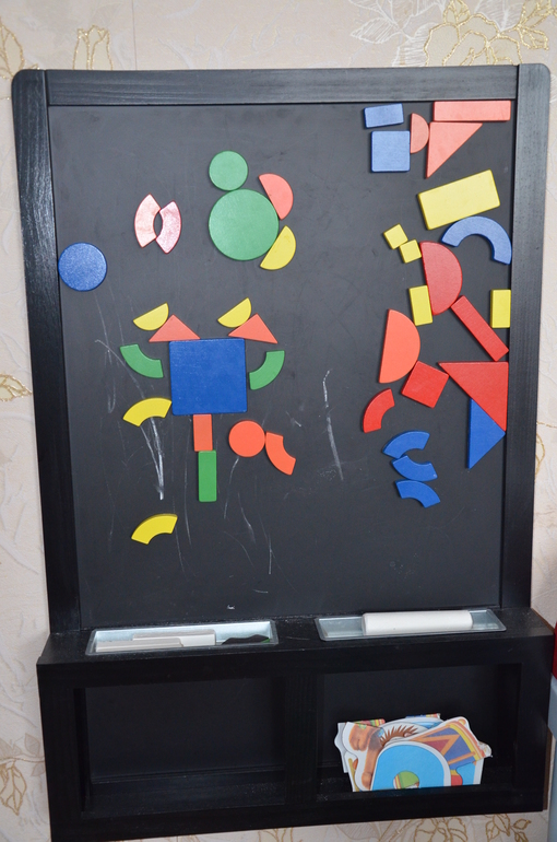 Магнитный конструктор мы сразу вынули из чемоданчика,т.к. у меня сынок безумно бесился,что он постоянно закрывается и приспособили на икеевской доске.Конструктор тоже не плохого качество,тем более покупала его за смешные деньги на тот момент(что-то около 600р.).Детальки ровные,аккуратные,яркие.