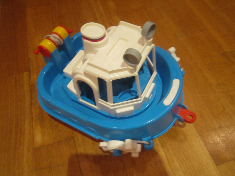 У нас такая же лодочка! Очень классная! И качественная. Мы вот только на воду ее ни разу спускали, но сын часто играет с ней в детской. А еще мы вместе с ним играем в сказку (он учится сейчас считать) - про козленка, который умел считать до 10. Все 10 зверей в эту лодочку помещаются. В сказке кстати почти такая же лодка (изд-во МП).