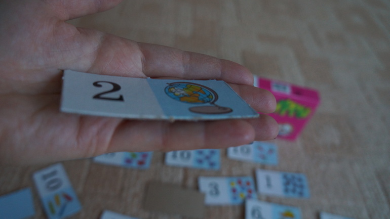 Заказала домино цифры - идея хорошая, качество - не очень (цена все оправдывает), но поиграть думаю хватит. Материал: дешевый картон, с неровными краями, в руках держать не приятно.