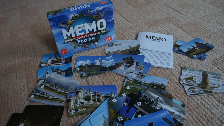 Еще одна игра от которой я просто в восторге: качество отличное, в руках держать приятно, цвета яркие + книжка с описанием каждого места. ИГРА мемо достопримечательности России. И память развивает и кругозор расширяет!