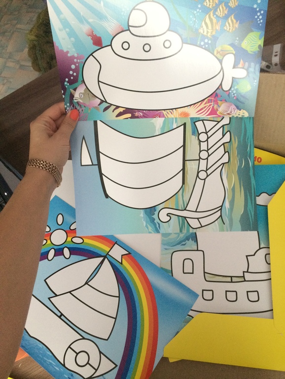 Каждая раскраска - это папочка, в которой картонные листы с рисунком. В каждой папочке по 4 раскраски. Например вот -