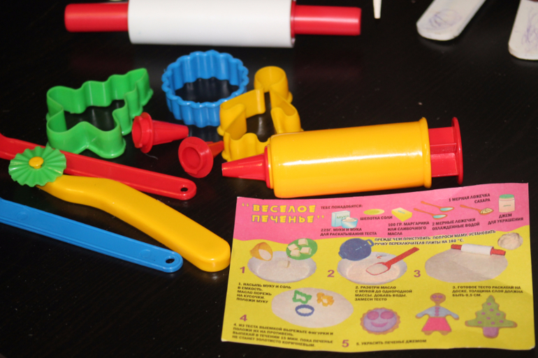 хороший наборчик. шприц и правда не держится, зато скалка и формочки порадовали.