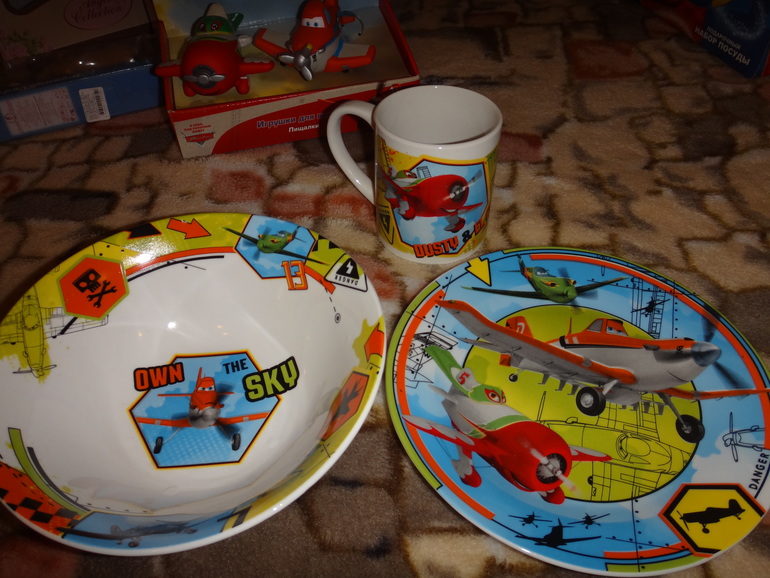 Прозрачное стекло , глубокая тарелка намного меньше, чем у самолетов. НО для 2-3 годовалого ребенка отлично !!! Рисунок напечатан на обратной стороне тарелки ,поэтому ложкой его не поцарапаешь .