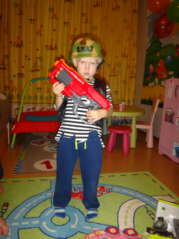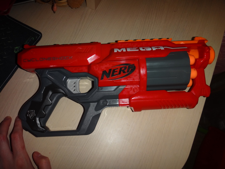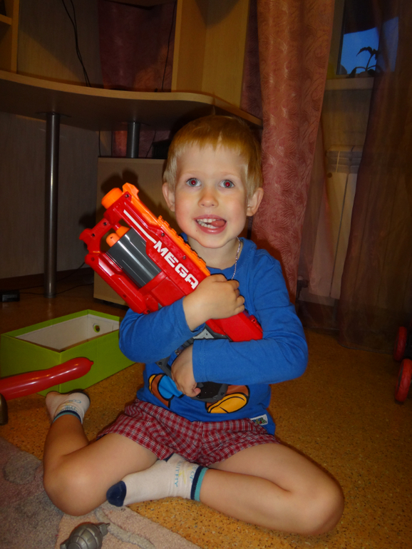 Только не понятно кому его подарила сыну или папе =)) ,потому что папа играется в него больше и чаще сына ) пули летят оооочень далеко ,стреляли в квартире и только слышен свист пуль )))