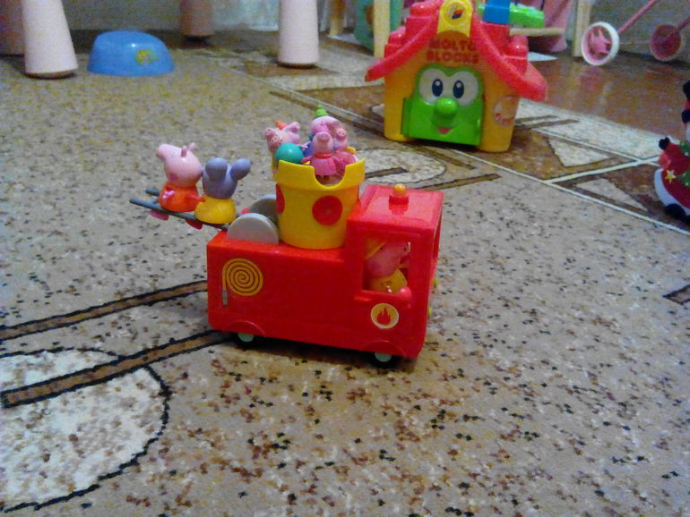 Очень ждали пожарную машинку Пеппа , дочка пищала от радости когда ее увидела , я довольна , хотя думала , что она будет побольше , но радует что хоть успела ухватить за 911 р :-) хоть она и не большая ,но очень вместительная