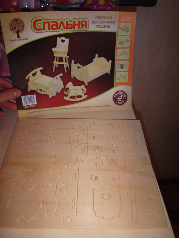 Вообщем спальня - собирается легко ( но в инструкции неправильно собирают колыбельку ) Но для крепости я еще купила клеевой пистолет и все детали посадила на горячий клей