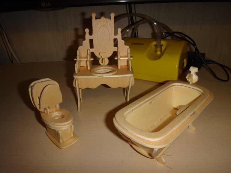 МДИ мебель-слишком дорого обходятся комнаты , а ведь хочется и детскую и спальню и даже ванную комнату . насчет пластмассы -либо совсем крошечные и страшные ,либо красивые ,но опять не понятно как будут смотреться в домике. Решила взять для пробы сборную мебель . Но не знала каков все таки будет размер -рискнула ,да не так и дорого стоит )
