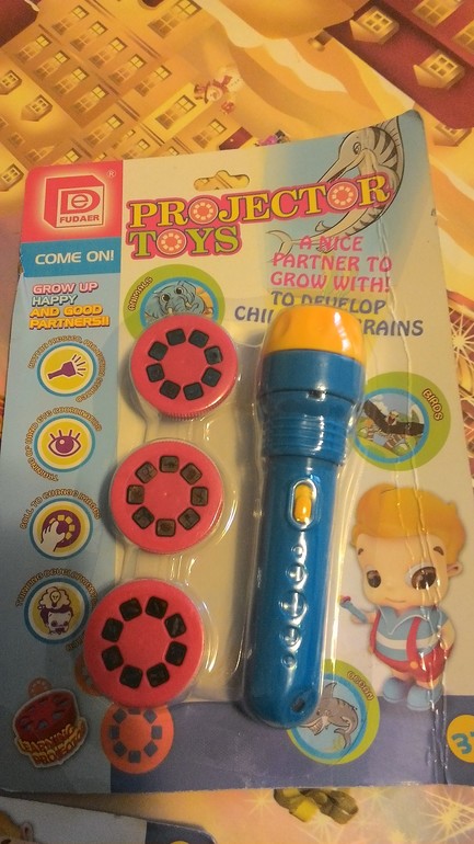 Они бывают разные, даже вроде со смешариками есть. Фонарик - проектор. Вставляем кругляшик с картинками прямо в него и наслаждаемся! У нас в наборе оказались динозавры, космос и ночные обитатели!