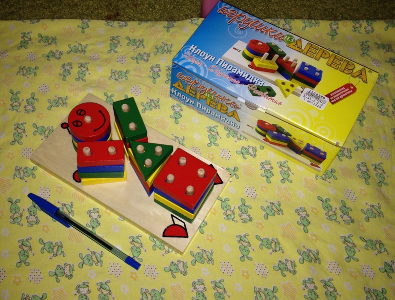 Хочется поделиться своими находками. В основном, картонки-развивашки и деревяшки-занимашки. Мы сейчас находимся в военно-полевых условиях, так что фотки качества фу-фу-фу и бе-бе-бе, прошу меня извинить. Линейки под рукой не оказалось, использовала ручку, чтобы показать размер вещиц.