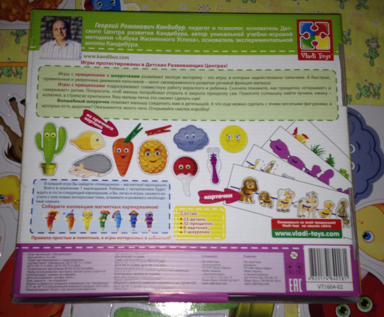Тут тебе и игра с прищепками, и шнуровка. Конечно, многие сами делают такие шаблоны. Но зачем париться, если есть готовое и со скидочкой) Я, как вы понимаете, очень боюсь перетрудиться))) А если серьезно - очень красивый наборчик, качественный, прищепки дочь обожает, так что эта игра для нас.