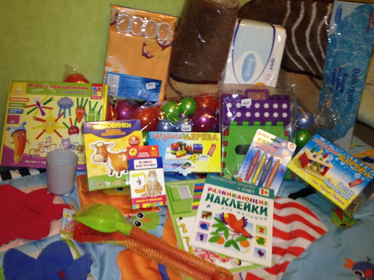 Большие многоразовые наклейки, красивые картинки. Ребенок научится считать и соотносить объект с его силуэтом. Ну или повеселится, приклеивая наклейки туда, куда хочется.