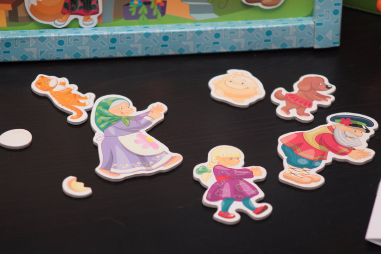 Очень хороший набор! Я дочке рассказываю сказку,а она сама героев расставляет(год и семь). Еще покупали магниты лесные животные,тоже с этой доской играем.
