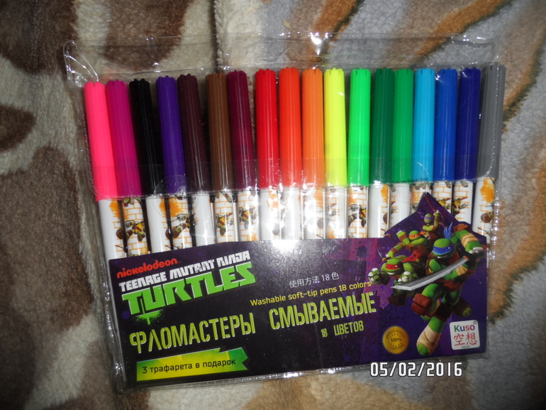 Фломастеры черепашки и Даша за копейки, пишут хорошо. В Даше было 3 трафарета. За 13р краб и скорпион. И динозавры брала 4 шт, стоили с скидкой рублей 15.