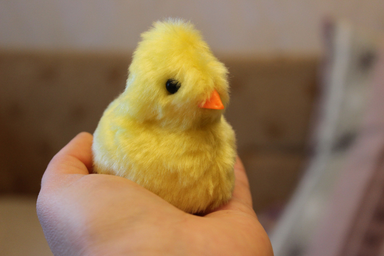Волшебный цыпленок. Реалистично пищит, когда сажаешь его на ладонь.