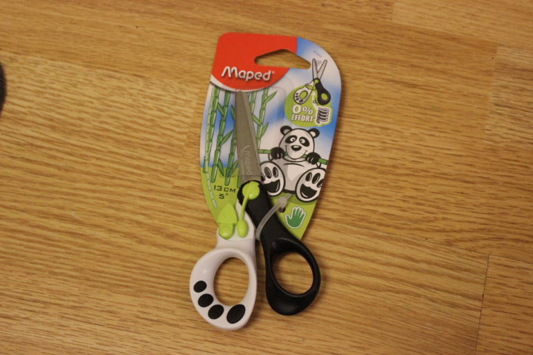 Детские ножницы с пружинкой. Как раз для тренировки первых навыков.