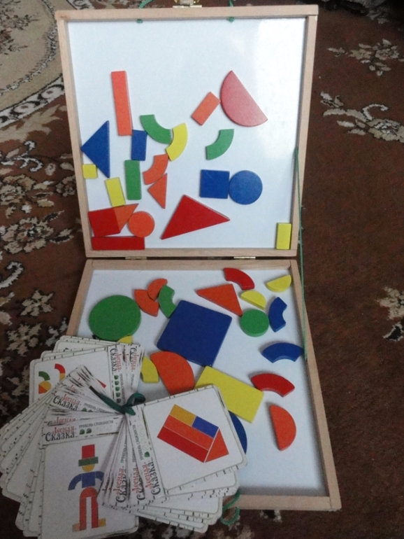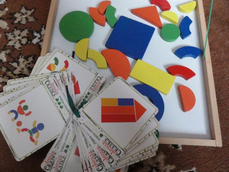 Детям очень нравится собирать по картинкам которые прилагаются к чемоданчику, разного уровня сложности, малышам попроще, а старшему потруднее.