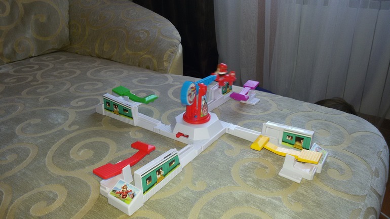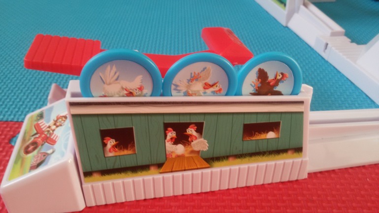 Моя ошибка. что на фото я не выставила жетончики курочек, поэтому и не понятно! смотрите предпоследнее фото. Игроки выбирают себе педальку! Запускают Летчика Луи! Когда он приблежается к жетонам, то при соприкосновении с ними, курочка-жетон падает, а это будет обязательно если вовремя не нажать свою педальку и не подбросить Луи вверх (тем самым вы "отгоняете" Луи от курочек). Если Луи сбил три ваших жетона, вы проиграли.