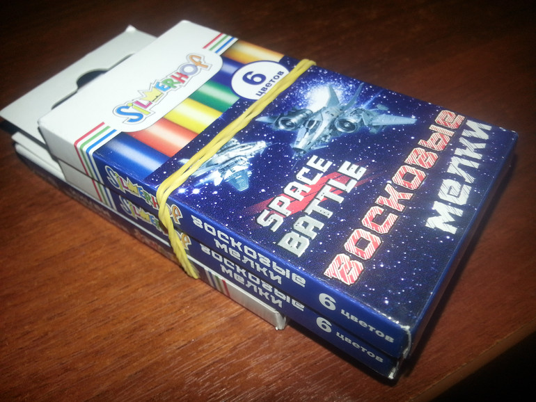 Плюс восковые мелки. http://my-shop.ru/shop/products/1660897.html