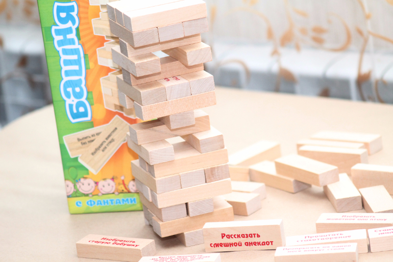 Как вариант) Хотя у меня плашки цветные, у нас с кубиком башня, кубик кидаешь и какой цвет выпадает, такого цвета плашку вытащить надо.