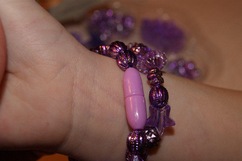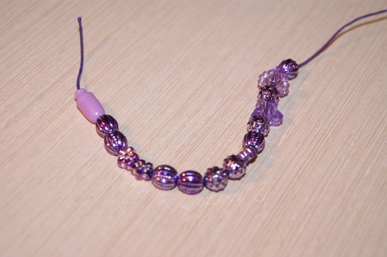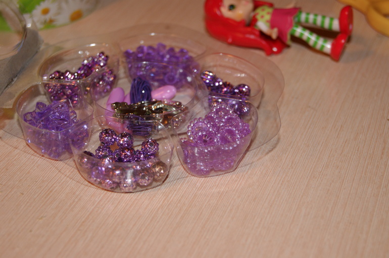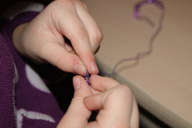 Дочка с удовольствием весь вечер собирала бусины на резиночку.Смастерила браслет и бусы с подвеской.