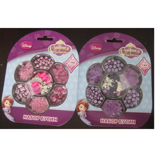 В наборе 6 разных видов бусин+3 подвески,резинка и застежки.