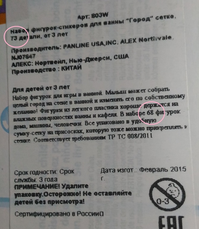 Не очень понятно по кол-ву деталей... На коробке указано 73 детали, на обратной стороне на наклейке - и 73, и 68