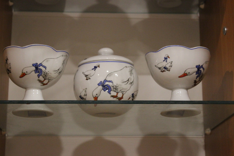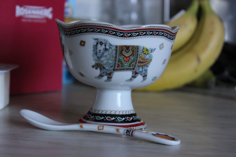 И самую малость я порадовала себя). Заказала сахарницу и креманки с гусями (у меня пустовала полочка в серванте). Теперь хочу еще и чайничек)Для сына заказала вот такую креманочку с очаровательным барашком. Будем кушать из нее фруктовое пюре)