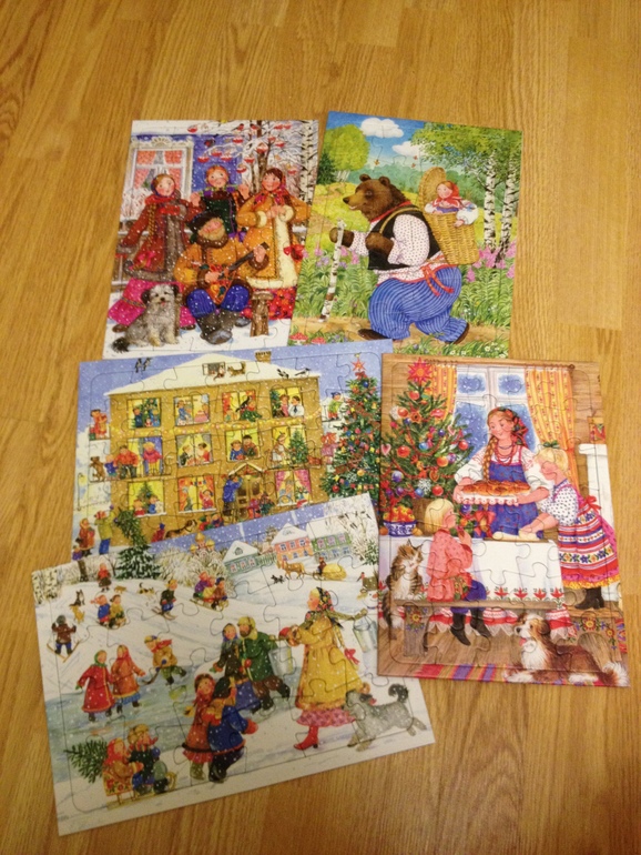 Детали прочные, не такие плотные конечно как у Ларсен, но погнуть так просто не получится. К тому же, они фактурные, что лично мне очень нравится, их приятно держать в руках. В пазлах "На катке" и "Маша и медведь" по 24 элемента, в остальных по 35.