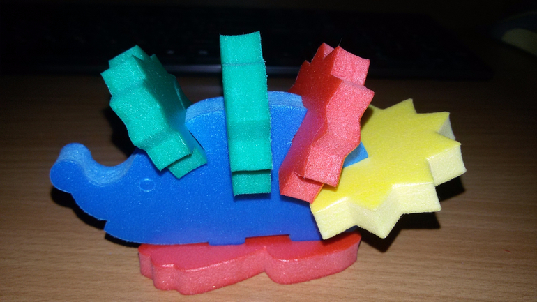 тоже мягкий конструктор, дочке понравился, но вот сверху наклеена бумага, поэтому сразу помялась, а дочь еще и сгибает...В общем надо играть аккуратно